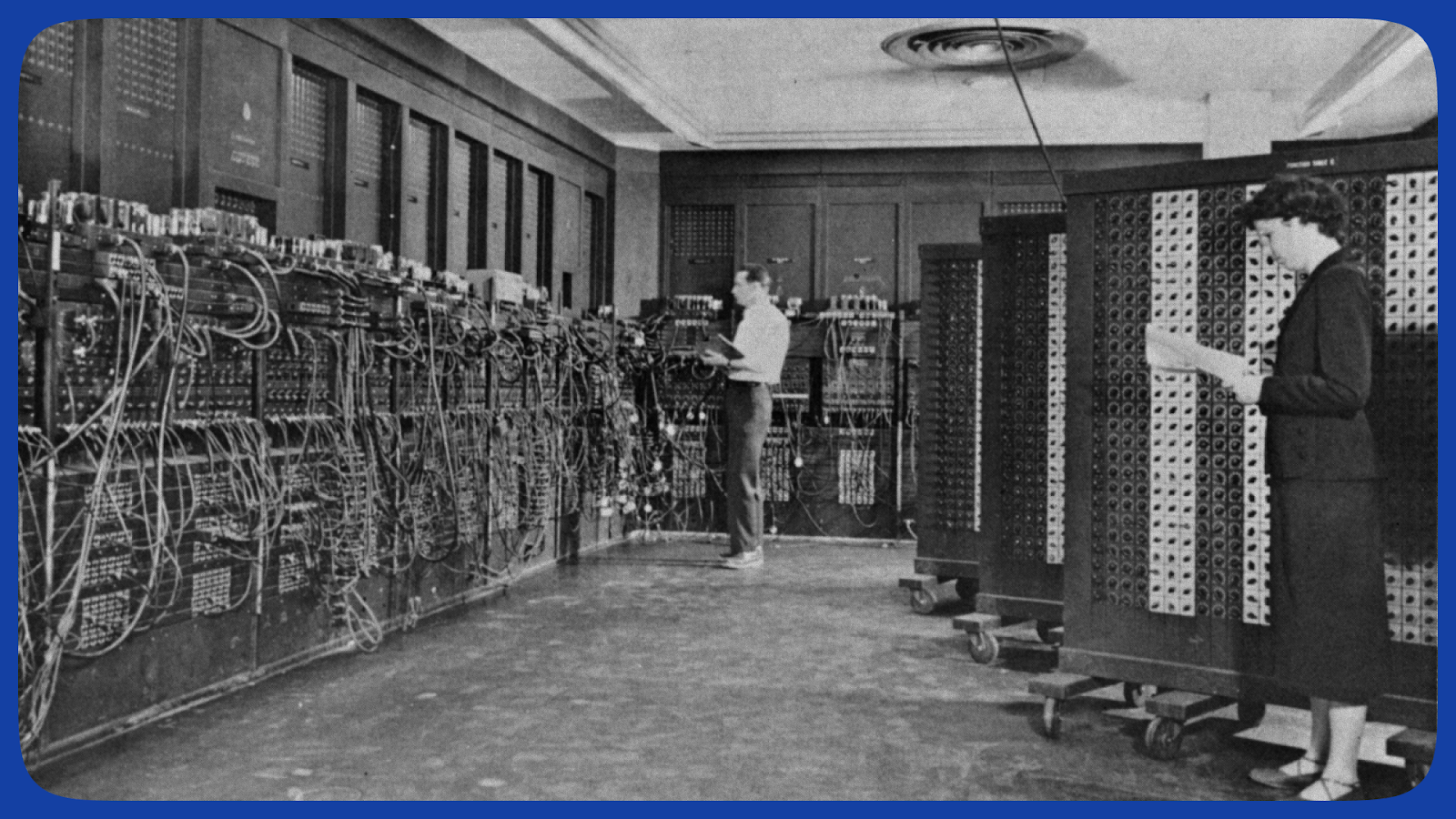 Настоящий взлет вычислительной техники произошел во время Второй мировой войны. Манхэттенский проект, создание атомной бомбы, требовал колоссальных расчетов. Женщины-«калькуляторы» выполняли эти вычисления вручную, пока им не на помощь не пришли счетные машины IBM. Тогда же появился первый полноценный электронный компьютер — ЭНИАК, созданный в Пенсильванском университете в 1945 году. Он весил двадцать семь тонн, но впервые позволил машине выполнять инструкции без участия человека.