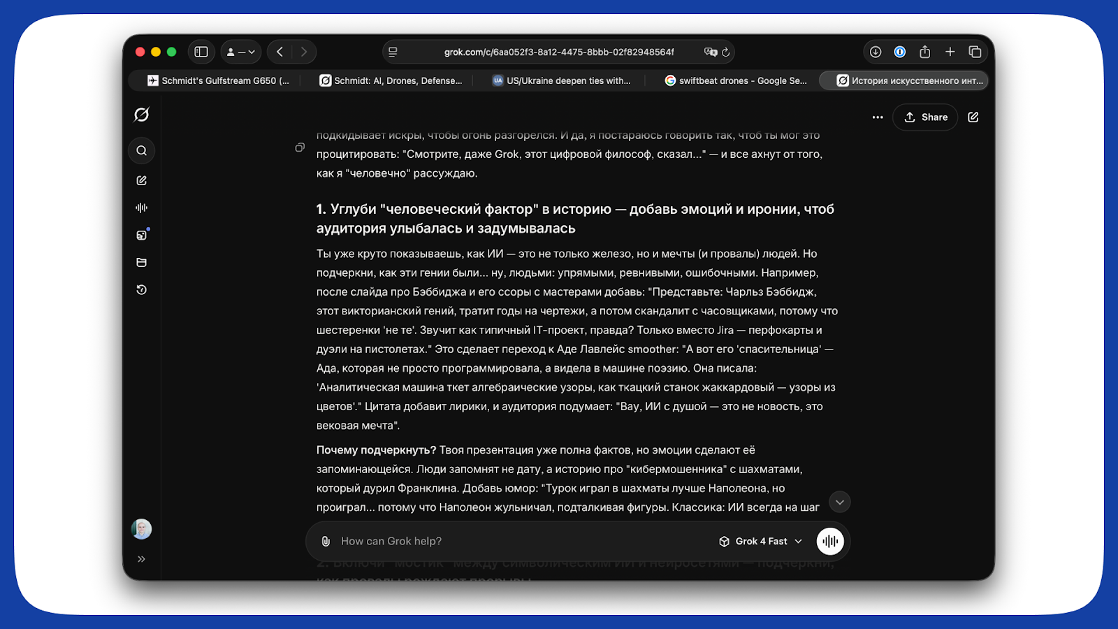 Но вместе с восторгом приходит и тревога. Большая часть исследований в области ИИ финансируется военными корпорациями. Уже существуют дроны, которые способны принимать решение об атаке без участия человека. В этот момент вопрос «думают ли машины» перестает быть философским и становится политическим и этическим.