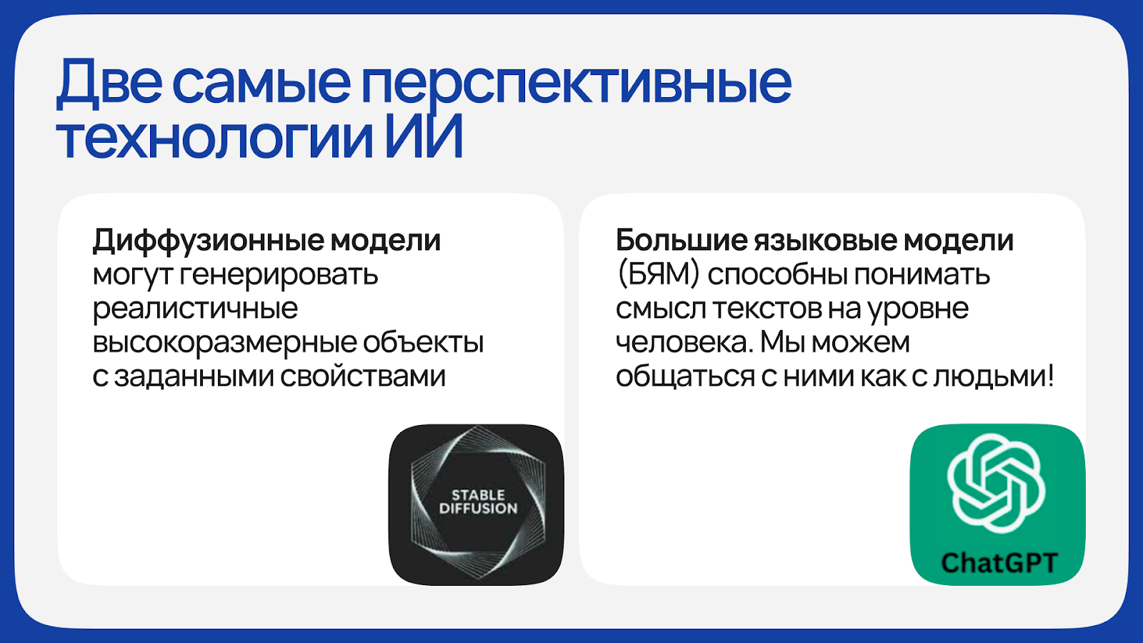 Современный бум в искусственном интеллекте связан с двумя типами генеративных моделей, которые создают сложные объекты, а не просто классифицируют их.