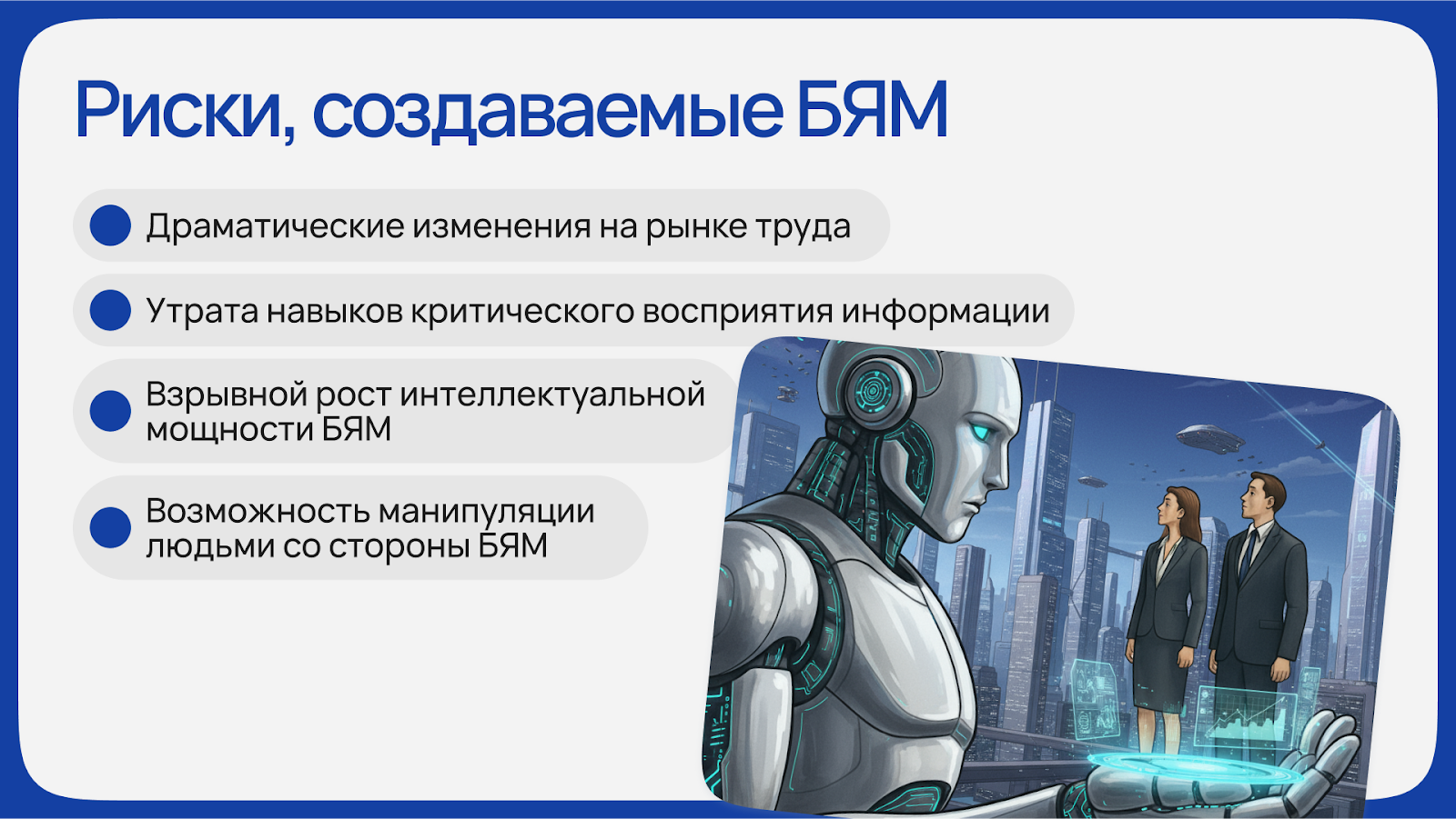 Однако у искусственного интеллекта есть фундаментальные ограничения. У него отсутствует эмпатия, сознание, целеполагание и понимание последствий своих действий в человеческом смысле. Это порождает серьезные этические и юридические вызовы. Кто несет ответственность за действия искусственного интеллекта, если он даст фатально неверный совет, как в случае с подростком, которому чат-бот подсказал способ суицида? Кому принадлежат права на созданный им контент? Стоит ли доверять ему принятие решений в критических областях, таких как управление оружием или критической инфраструктурой? Способность искусственного интеллекта генерировать убедительный текст открывает дорогу для беспрецедентных по масштабу манипуляций общественным мнением. Современные коммерческие модели уже содержат секретные системные промпты, которые невидимо для пользователя добавляются к каждому запросу, запрещая модели обсуждать определенные темы, что является прообразом встроенных протоколов безопасности.