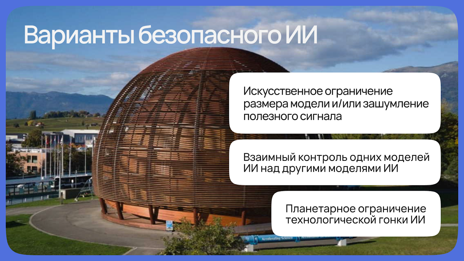 Пессимистический сценарий будущего — это мир киберпанка с растущим неравенством, массовой безработицей и деградацией образования. Оптимистический — экономический бум за счет роста производительности, введение безусловного базового дохода и гармоничное сотрудничество человека и машины. Для реализации позитивного сценария необходимы протоколы безопасности, встраивание этических директив в модели, взаимный контроль систем искусственного интеллекта и, возможно, создание международных исследовательских центров по аналогии с ЦЕРНом для контроля над разработкой самых мощных систем искусственного интеллекта. Даже в фантастических вселенных, борющихся за свободу, искусственный интеллект не допускается до принятия стратегических решений на военных советах, что отражает текущие антропоцентрические установки общества.